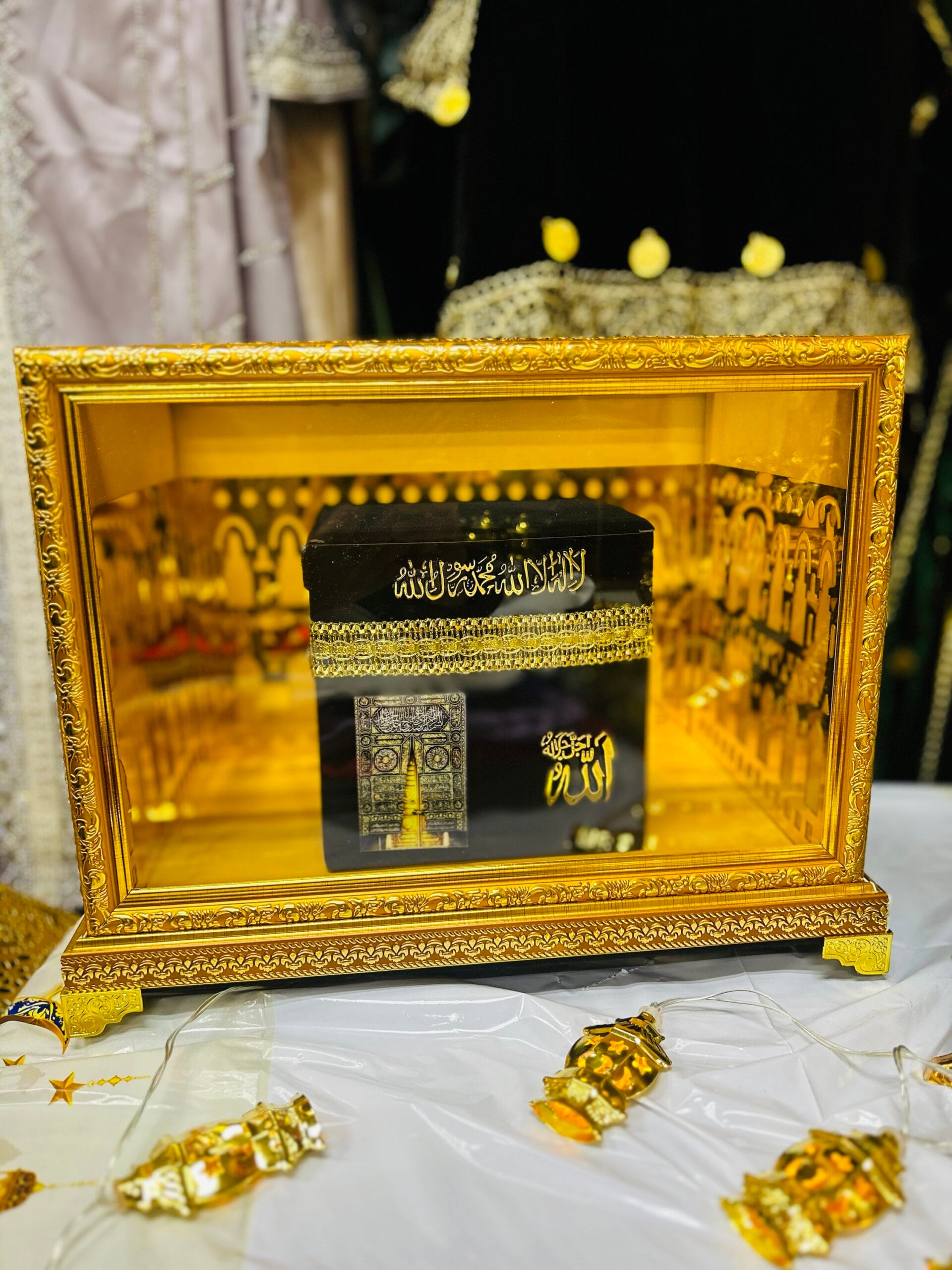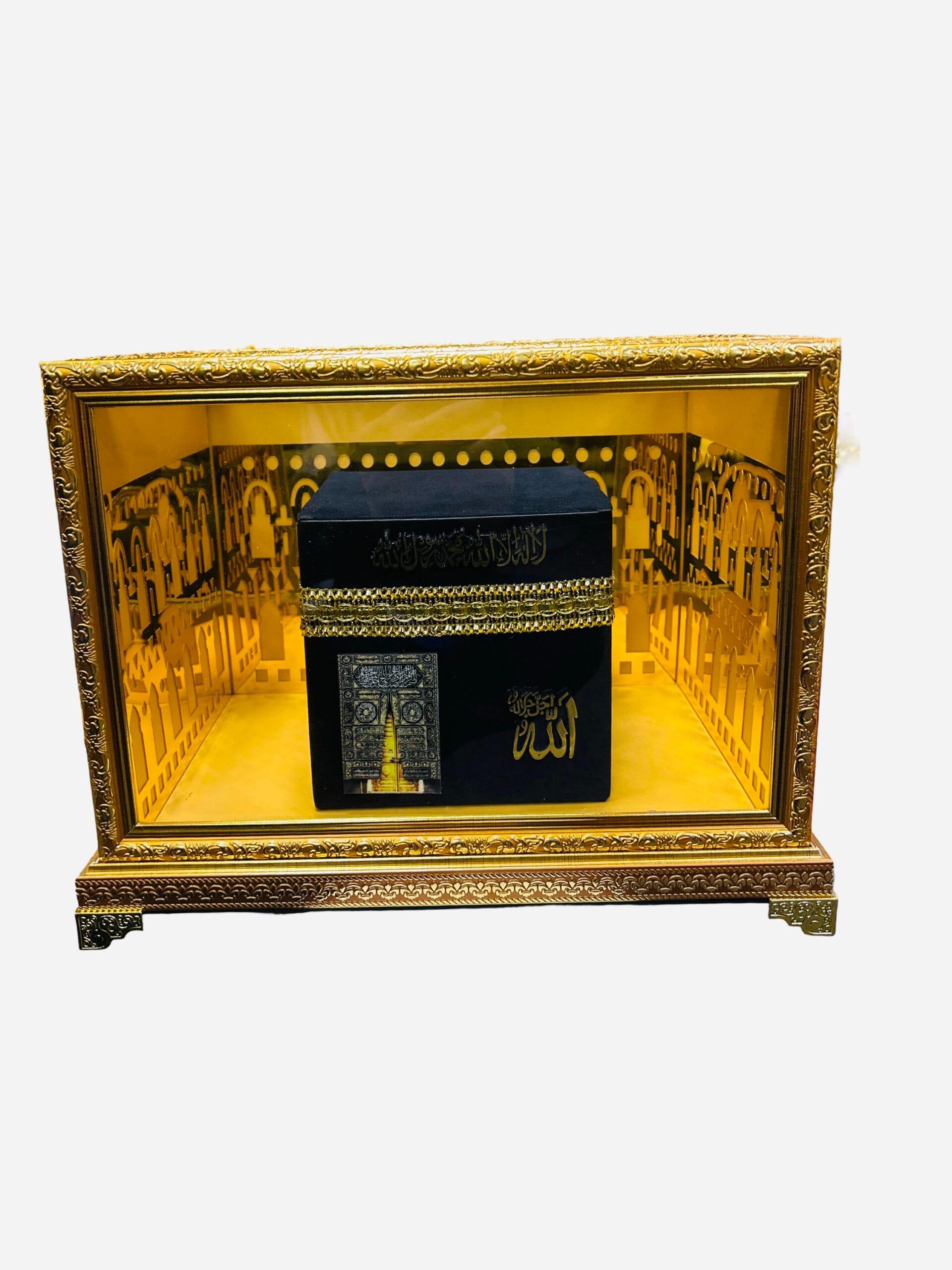 Kaaba Model with Elegant and Illuminated Golden Frame Design