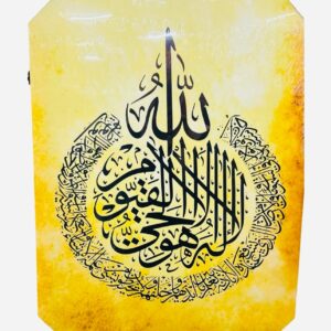 Elegantly presents Ayat Alkursi in a circular pattern accented with rhinestones, rounded off by a stunning square frame Material: Resin(dense