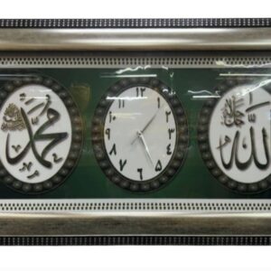 Allah & Mohammed centered with a Clock Silver And Green 60in x 120in