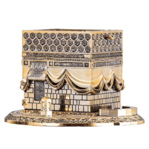 This Kaaba Replica comes with 12X17cm Kaba Design Quran. 4 Holy Gates embroidered on each side of this Kaaba Trinket.