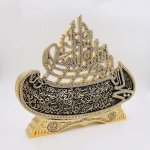 Unique gold boat shaped piece featuring Bismillah and Ayatul Kursi! Material: Resin Size: 22cm tall x 26cm wide (8.7in x