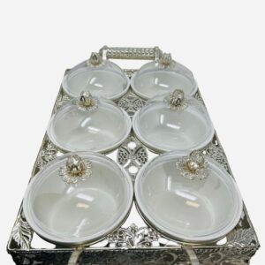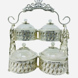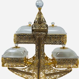Luxury 5-Squared Section Serving Dish with Crystal Knob | Elegant Design | Ideal for Nuts & Desserts | Perfect for