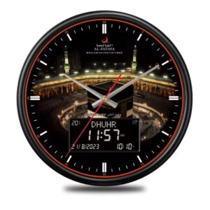 AL-FATIHA Large Round Wall Ana-Digi Automatic Azan Athan Prayer Clock Qibla Muslim 【Worldwide prayer times】- After changing the city, the