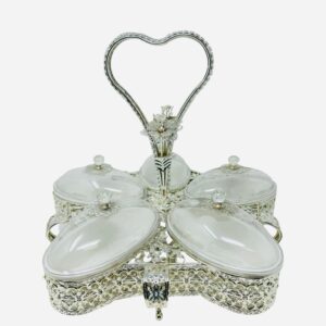 Luxury 5-Squared Section Serving Dish with Crystal Knob | Elegant Design | Ideal for Nuts & Desserts | Perfect for