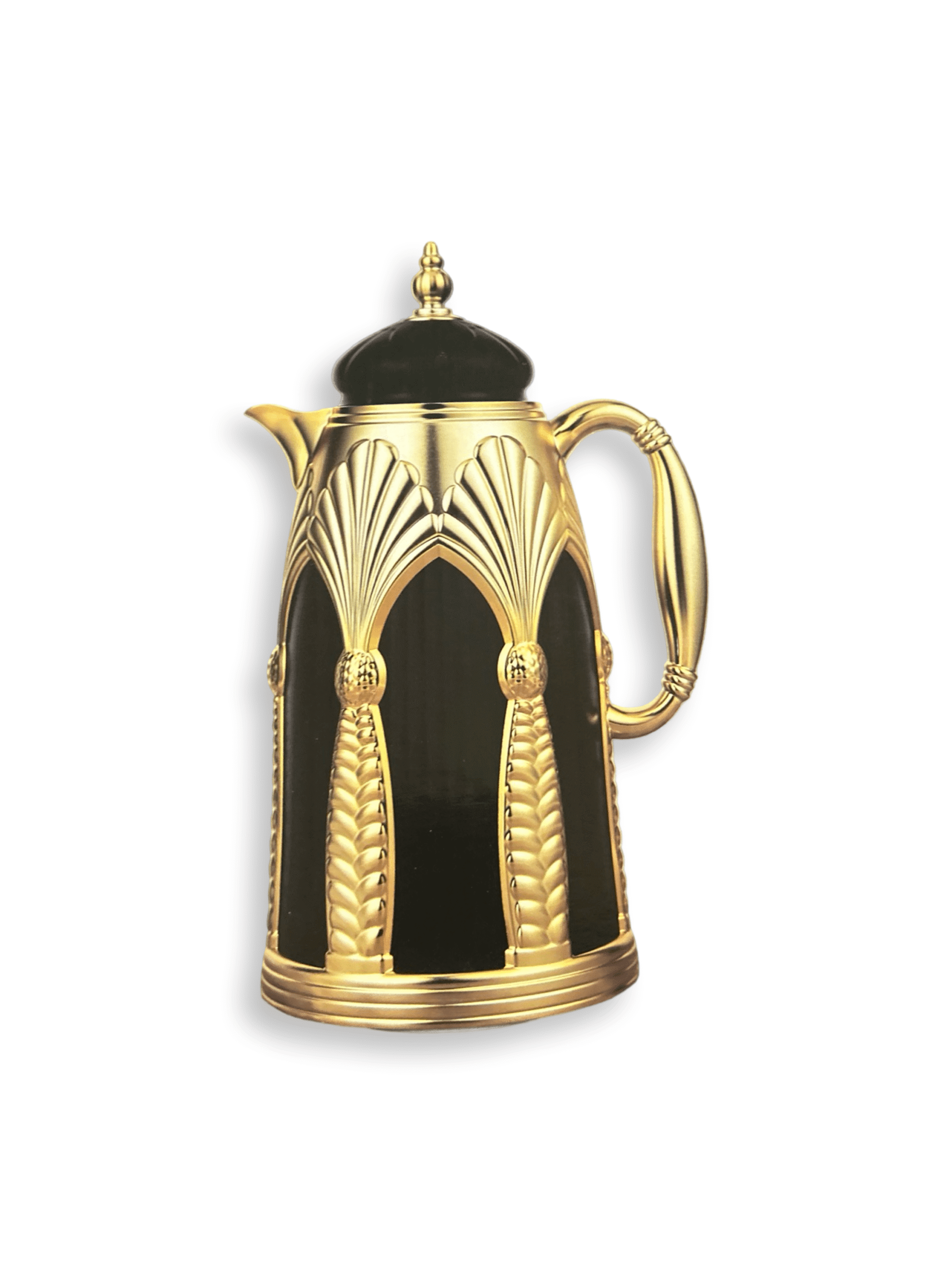 Ejshe coffee vacuum flask. Black and gold. Keeps hot or cold. 1 liter.