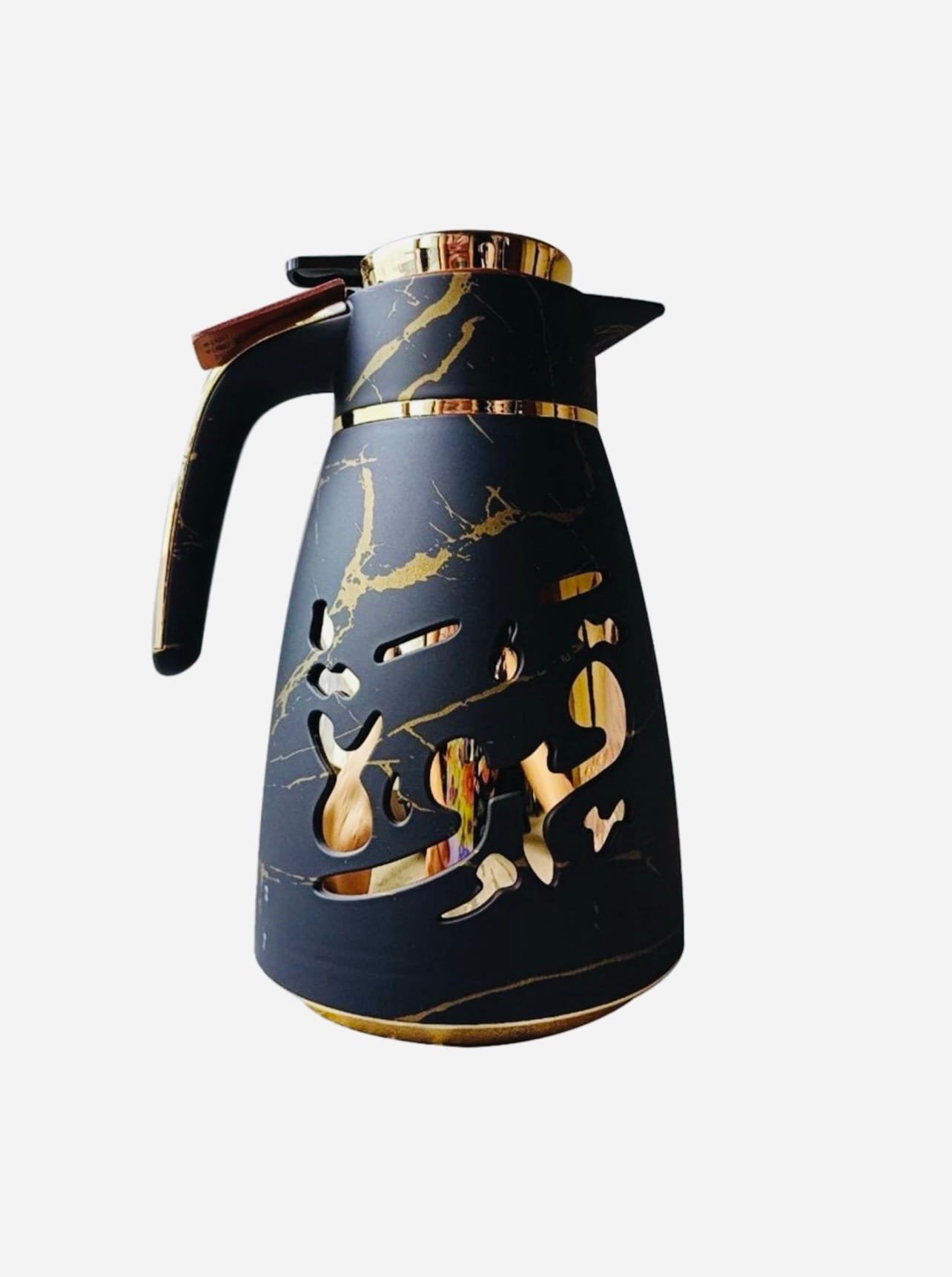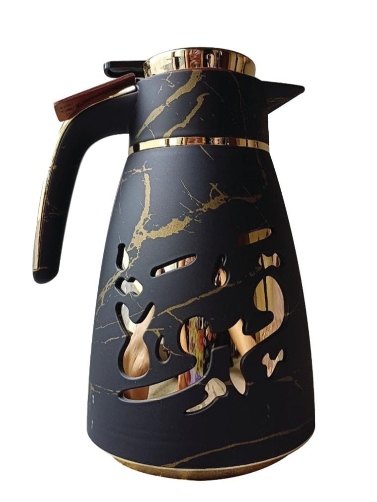 Ejshe marble coffee vacuum flask. black and gold. Keeps hot or cold. 1 liter.