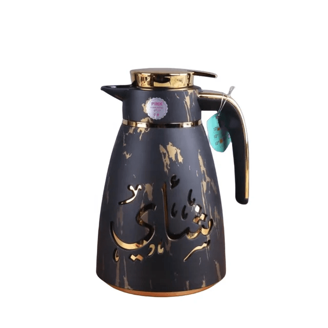 Ejshe marble tea vacuum flask. black and gold. Keeps hot or cold. 1 liter.