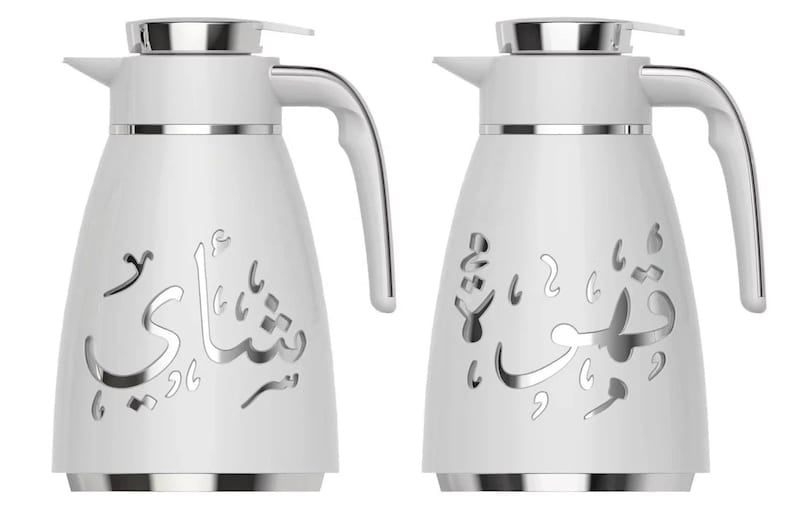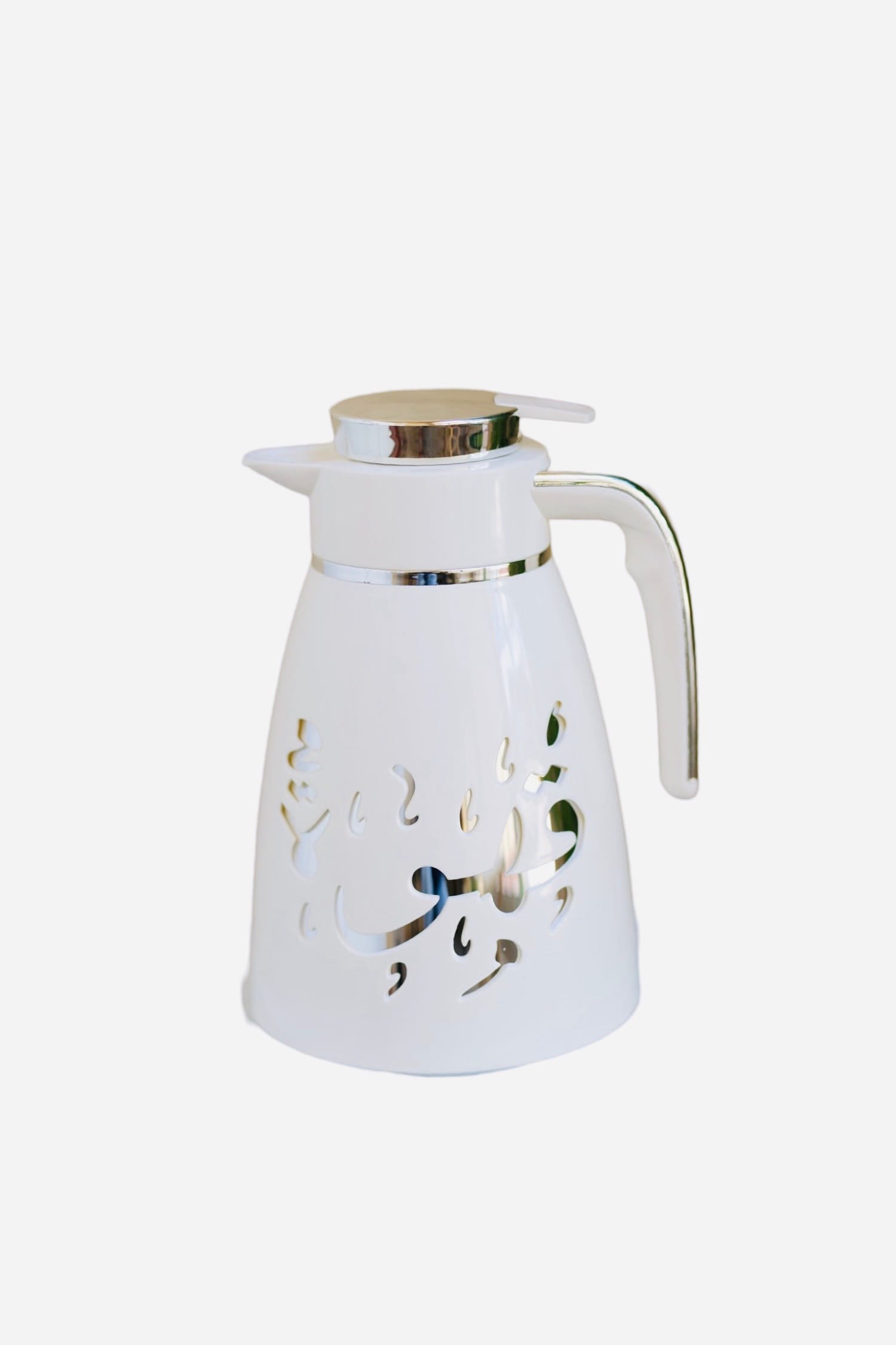 Ejshe coffee vacuum flask. White and silver. Keeps hot or cold. 1 liter.