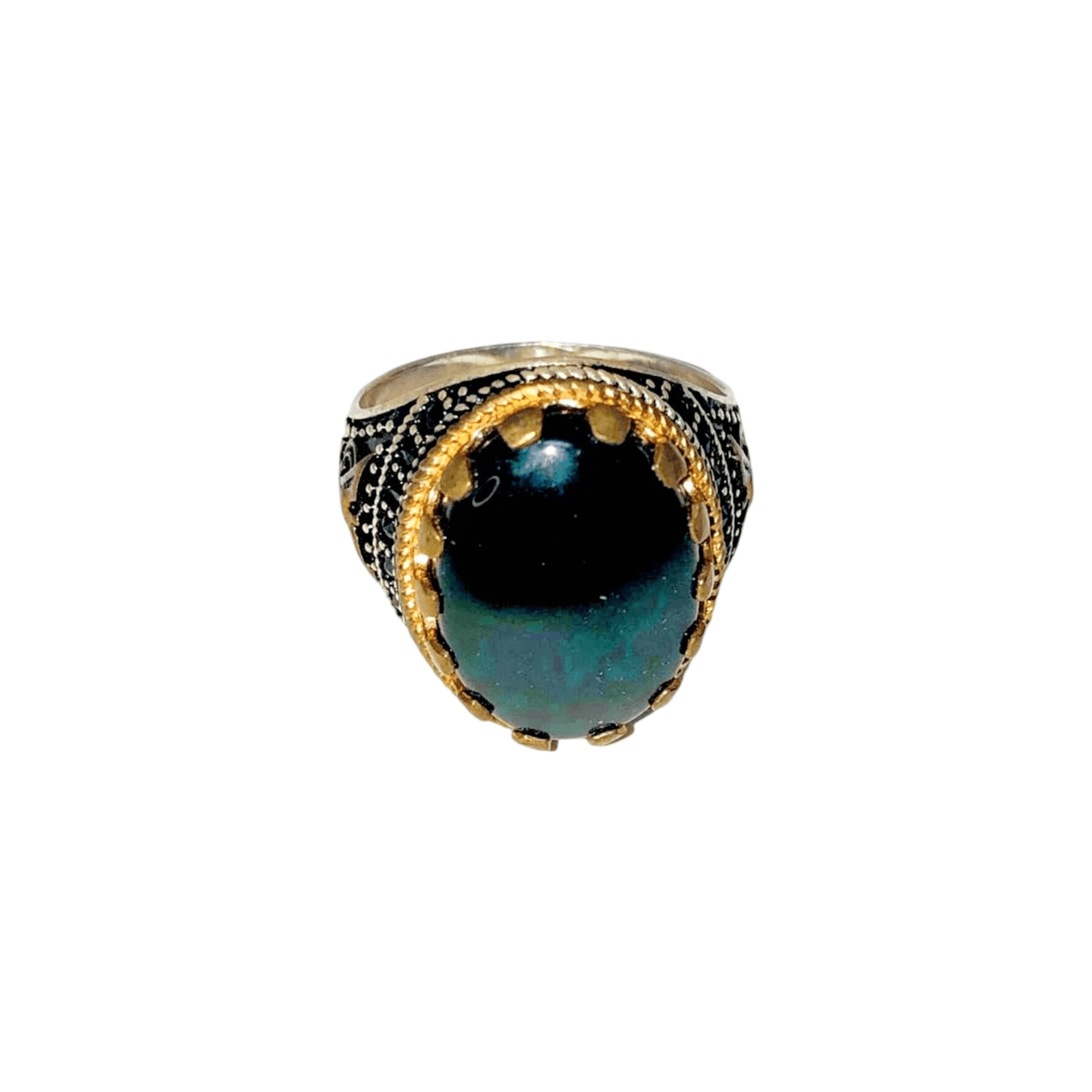 Black Agate with a Tint of Green Ring with Yemeni Bird on the sides