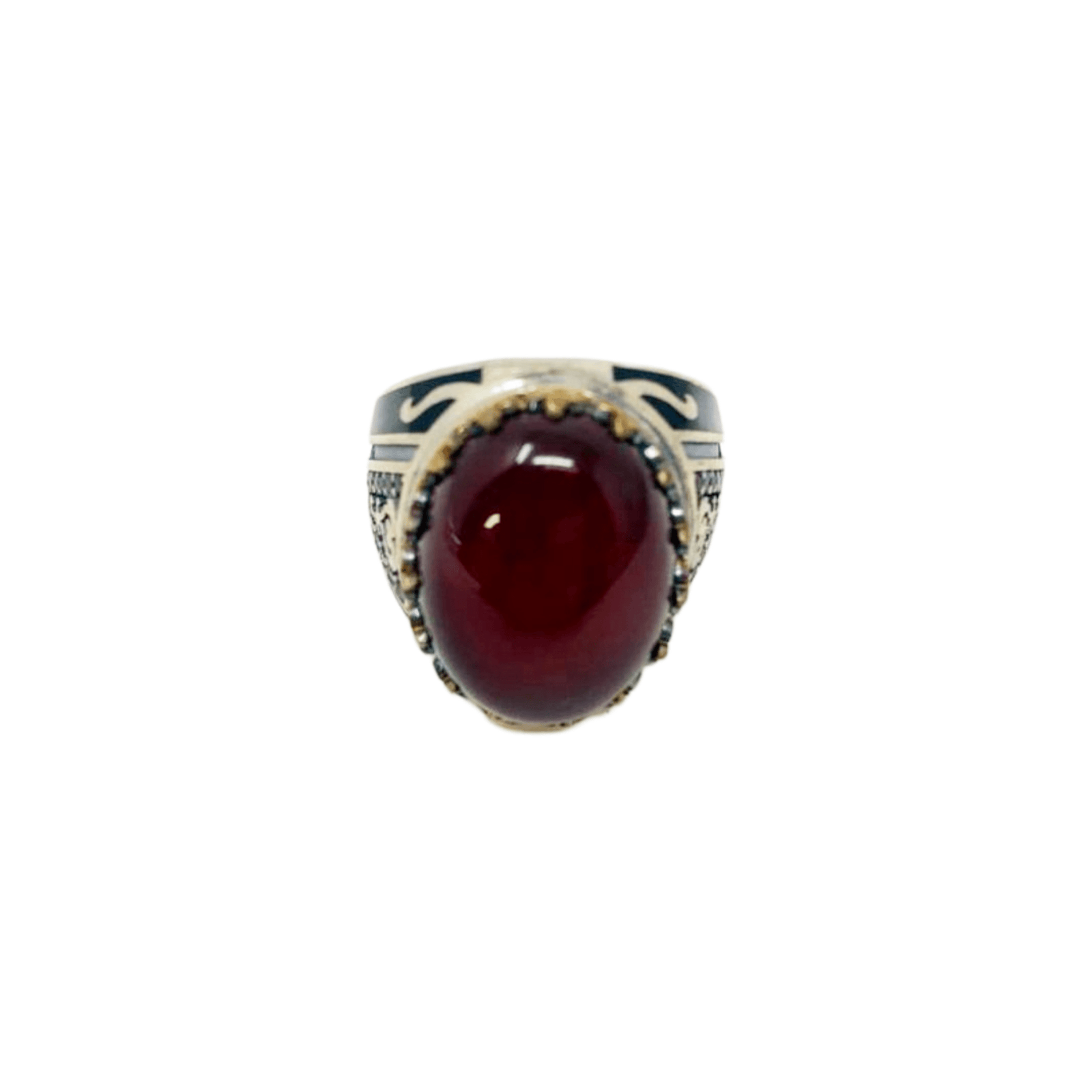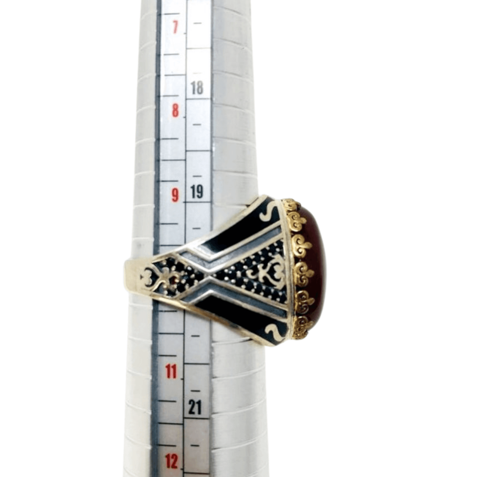 Black Agate Ring with Black design on the sides Size 10