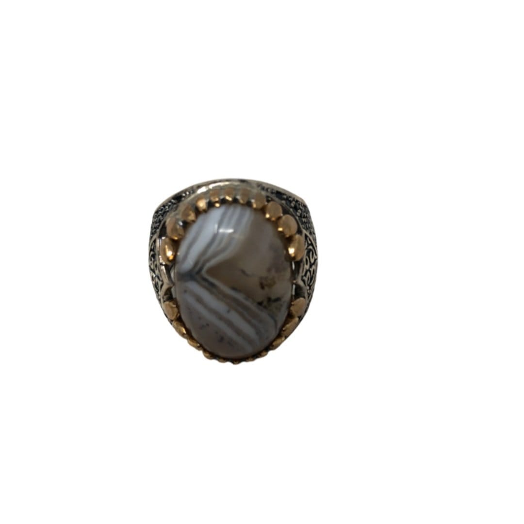 Agate White and Brown Ring Size 10