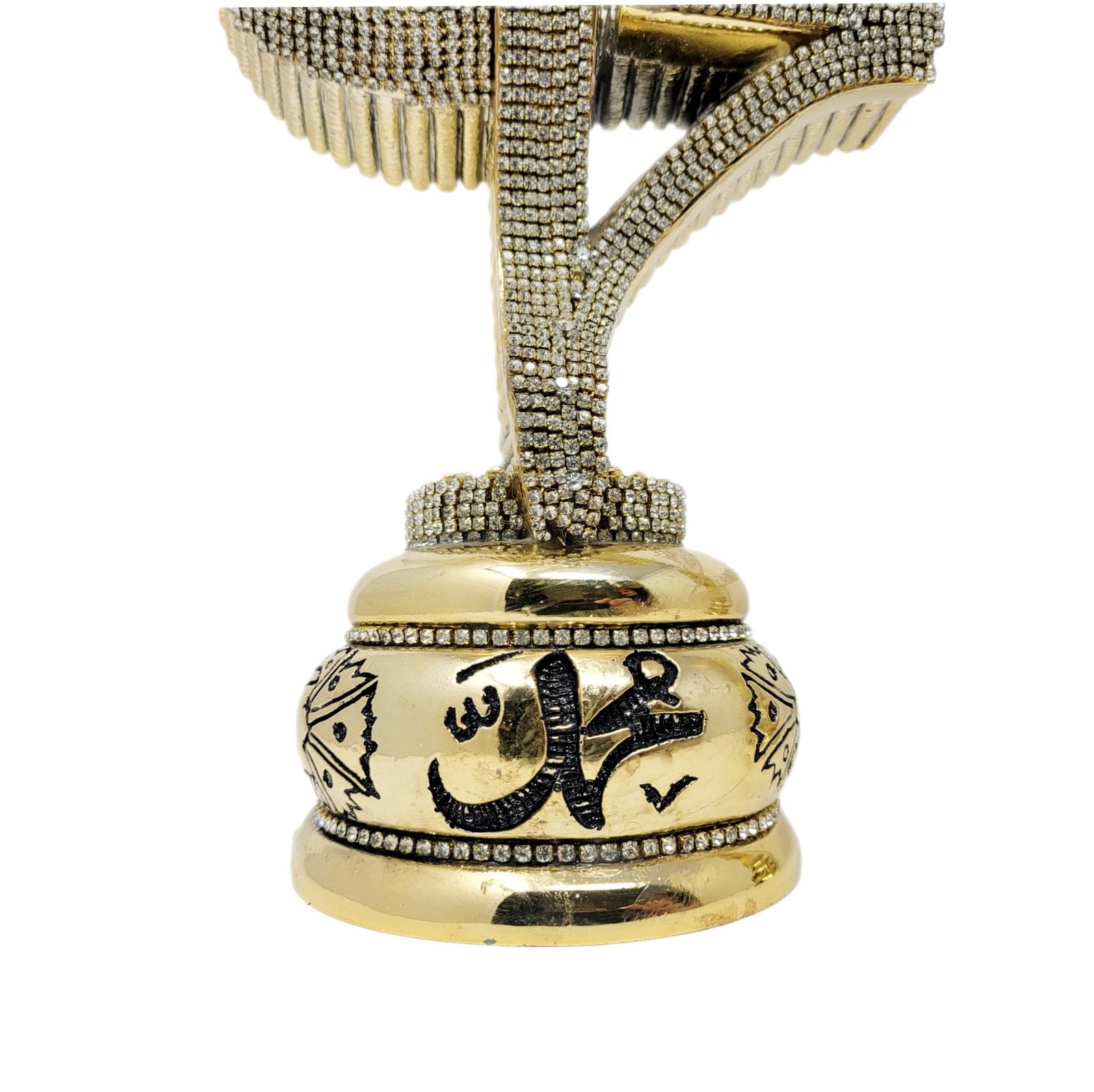 Designed to be a replica of Al-Masjid an-Nabawi in Medina with dazzling rhinestone accents. Material: Resin Size: 9in x 10in,