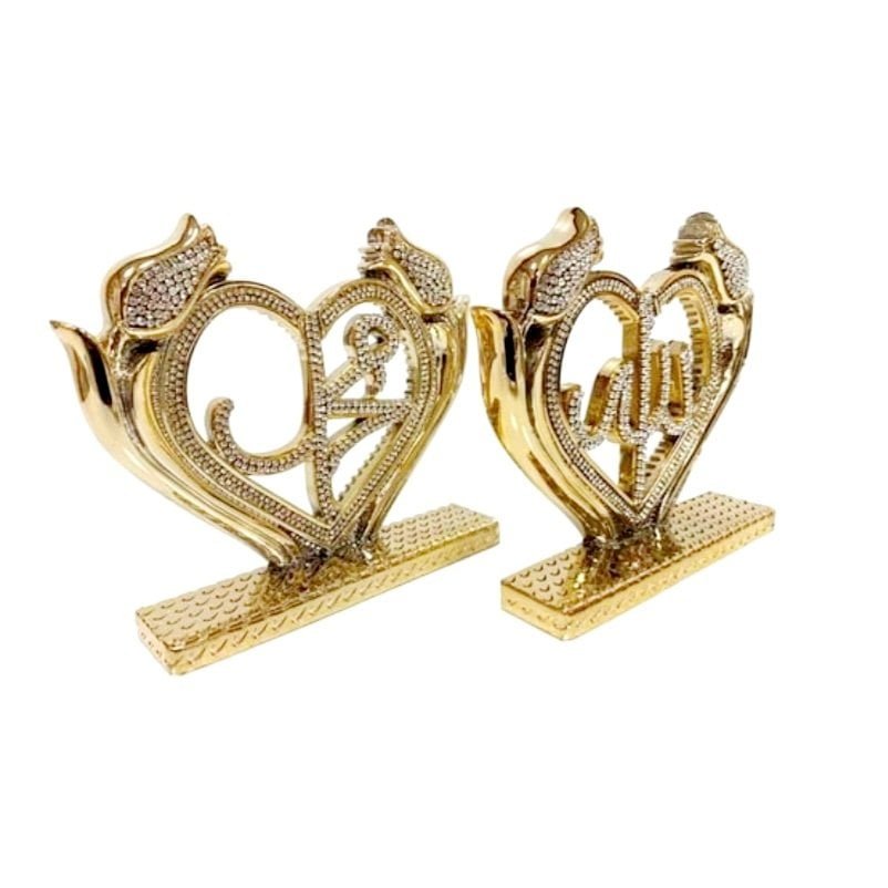 A beautiful golden cone sculpture engraved with the 99 names of Allah accented with crystal rhinestones Green, Red, Blue, Turquoise
