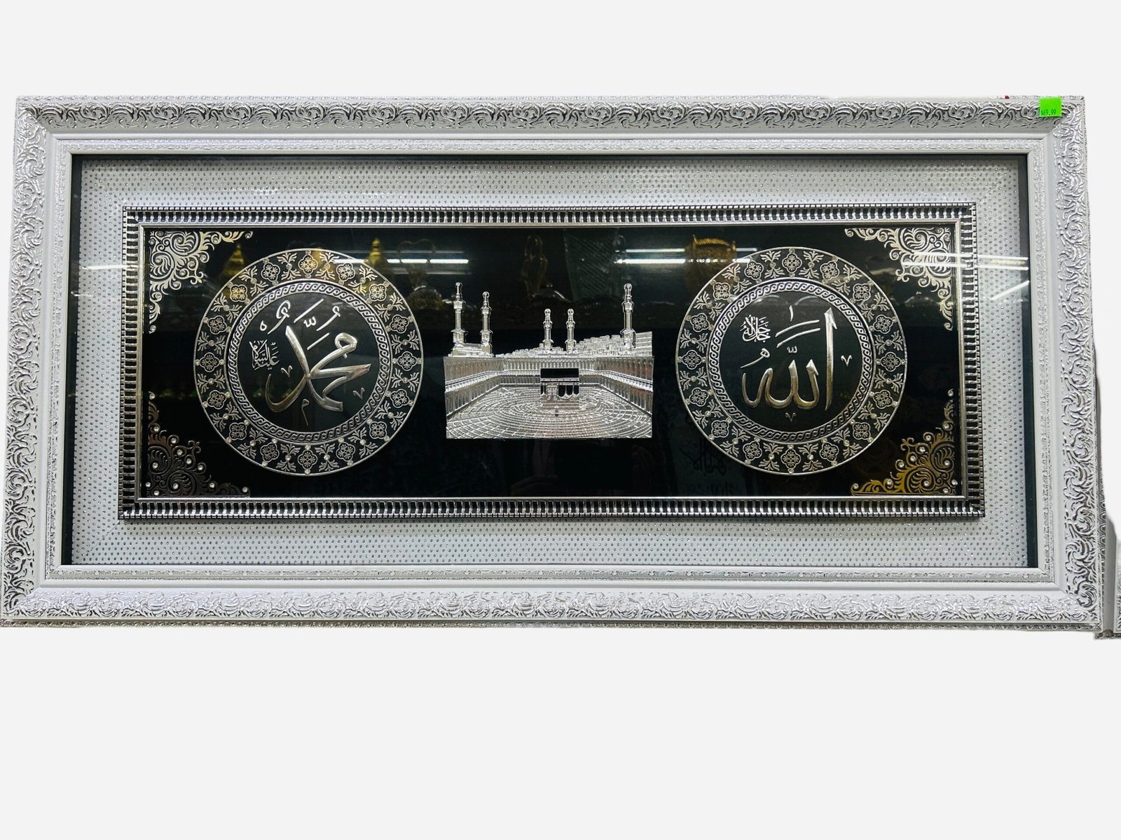 A beautiful white and blue cone sculpture engraved with the 99 names of Allah accented with crystal rhinestones Dimensions: 19