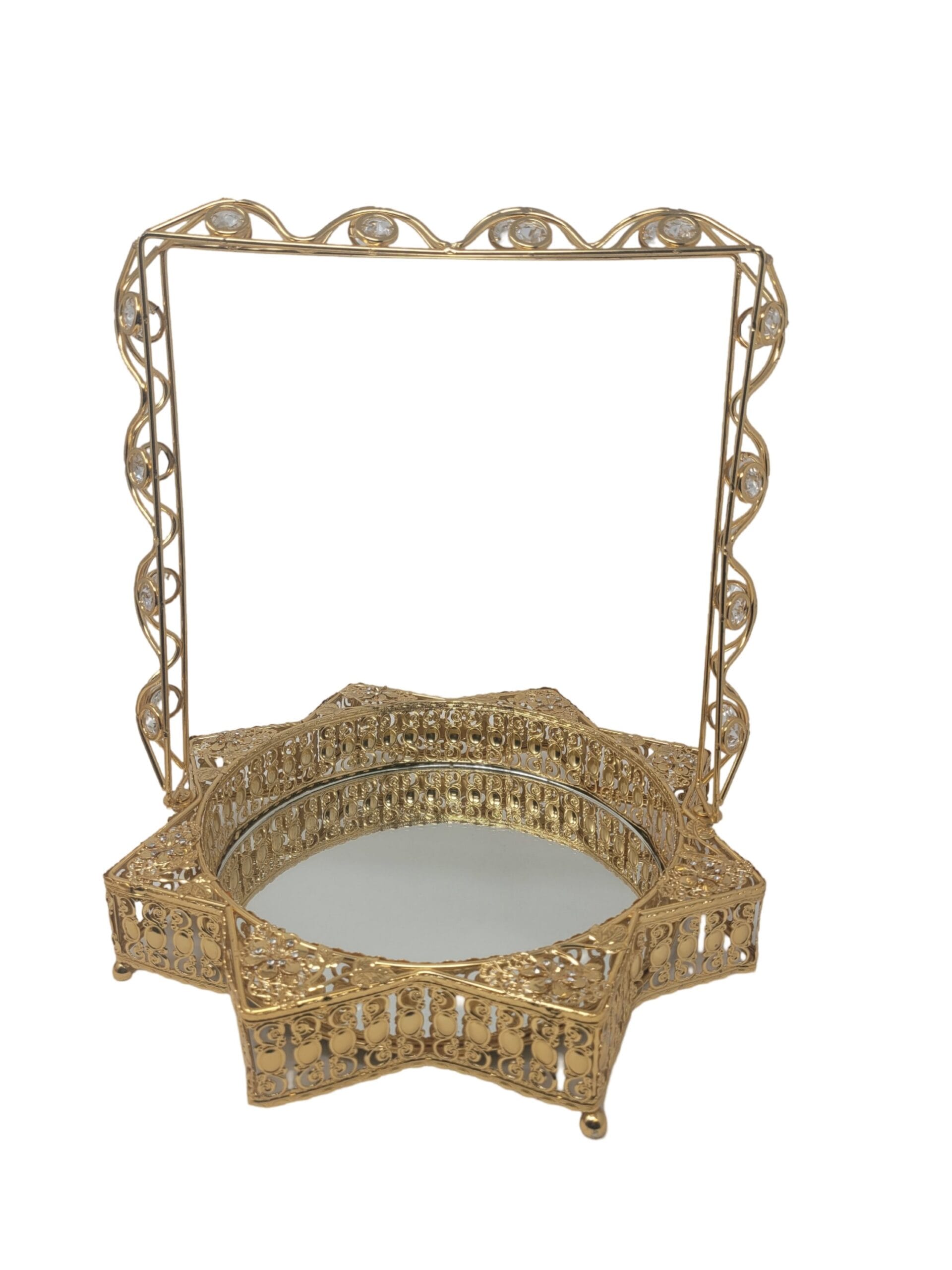 Gold glass containers for bakhoor and fragrance oil with tray.