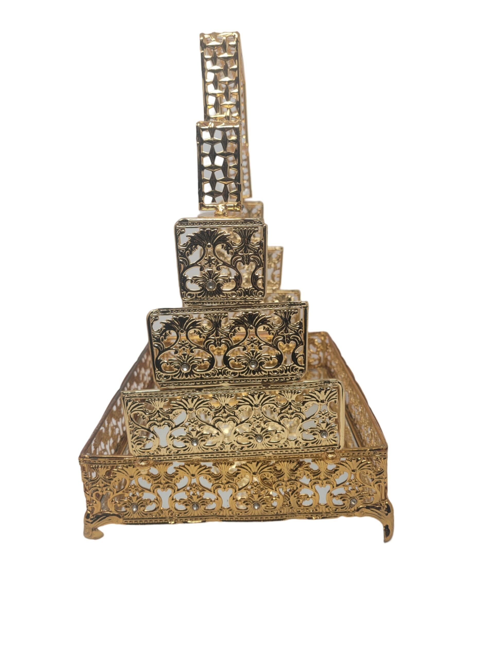 Gold glass containers for bakhoor and fragrance oil with tray.