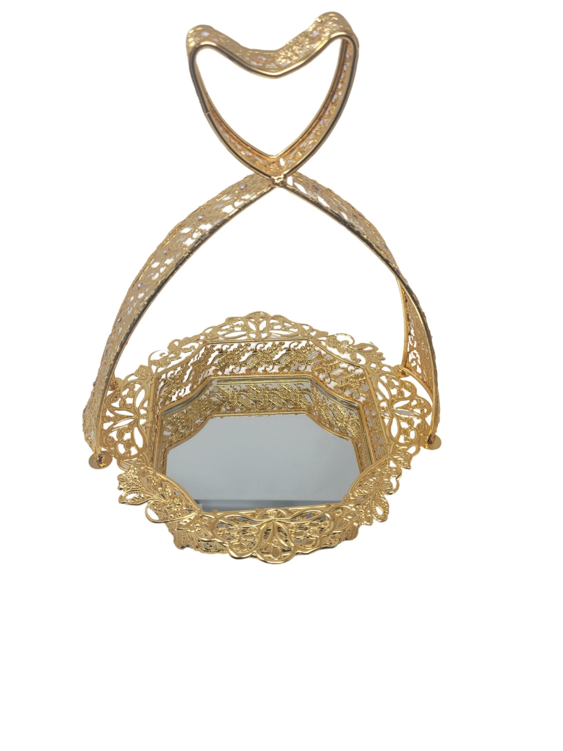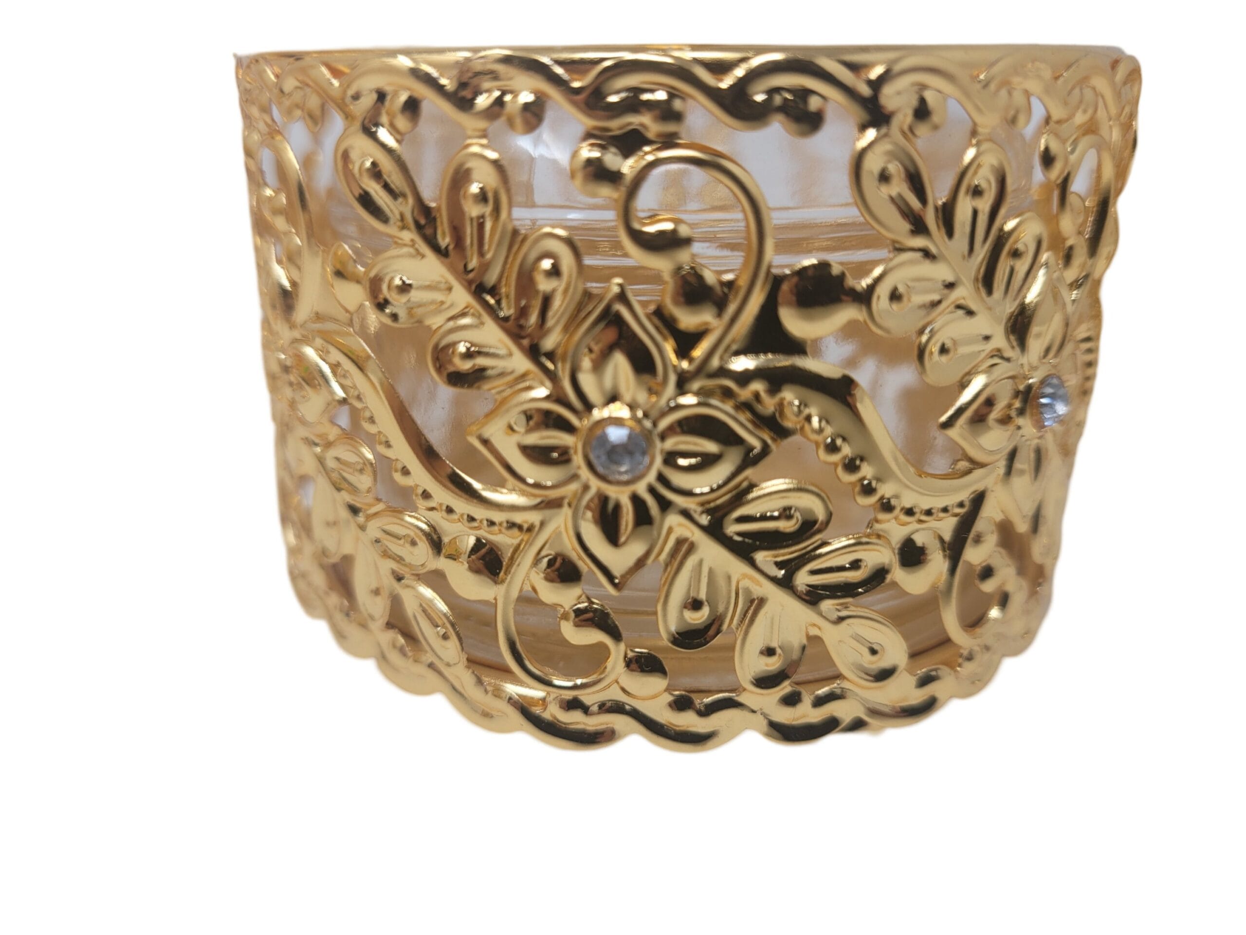 Gold glass containers for bakhoor and fragrance oil with tray.