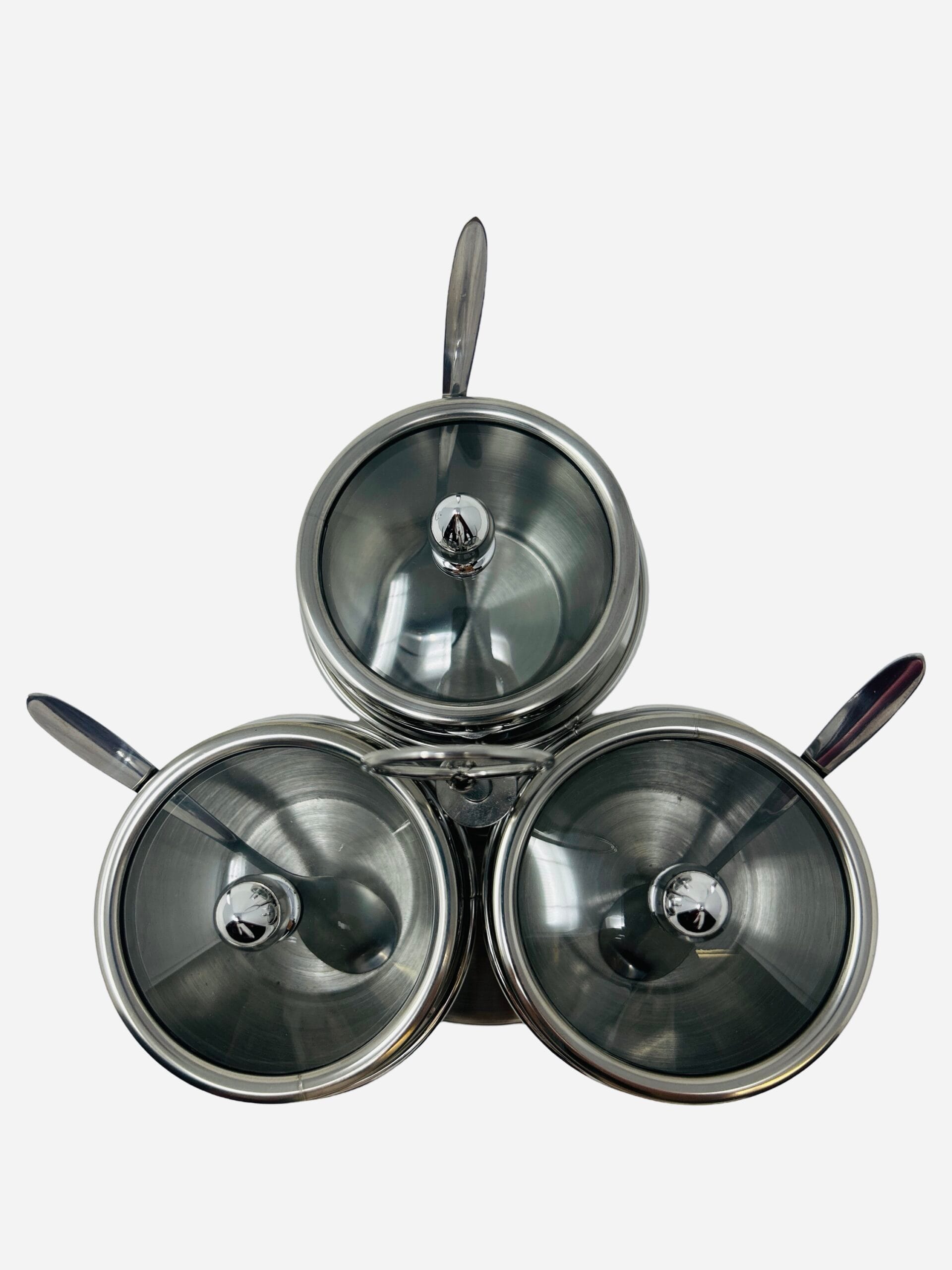 Bottles/Set Stainless Steel Condiment Seasoning Container Pots Sugar Bowl Seasoning Bowl with Lid and Spoon (Silver 3)