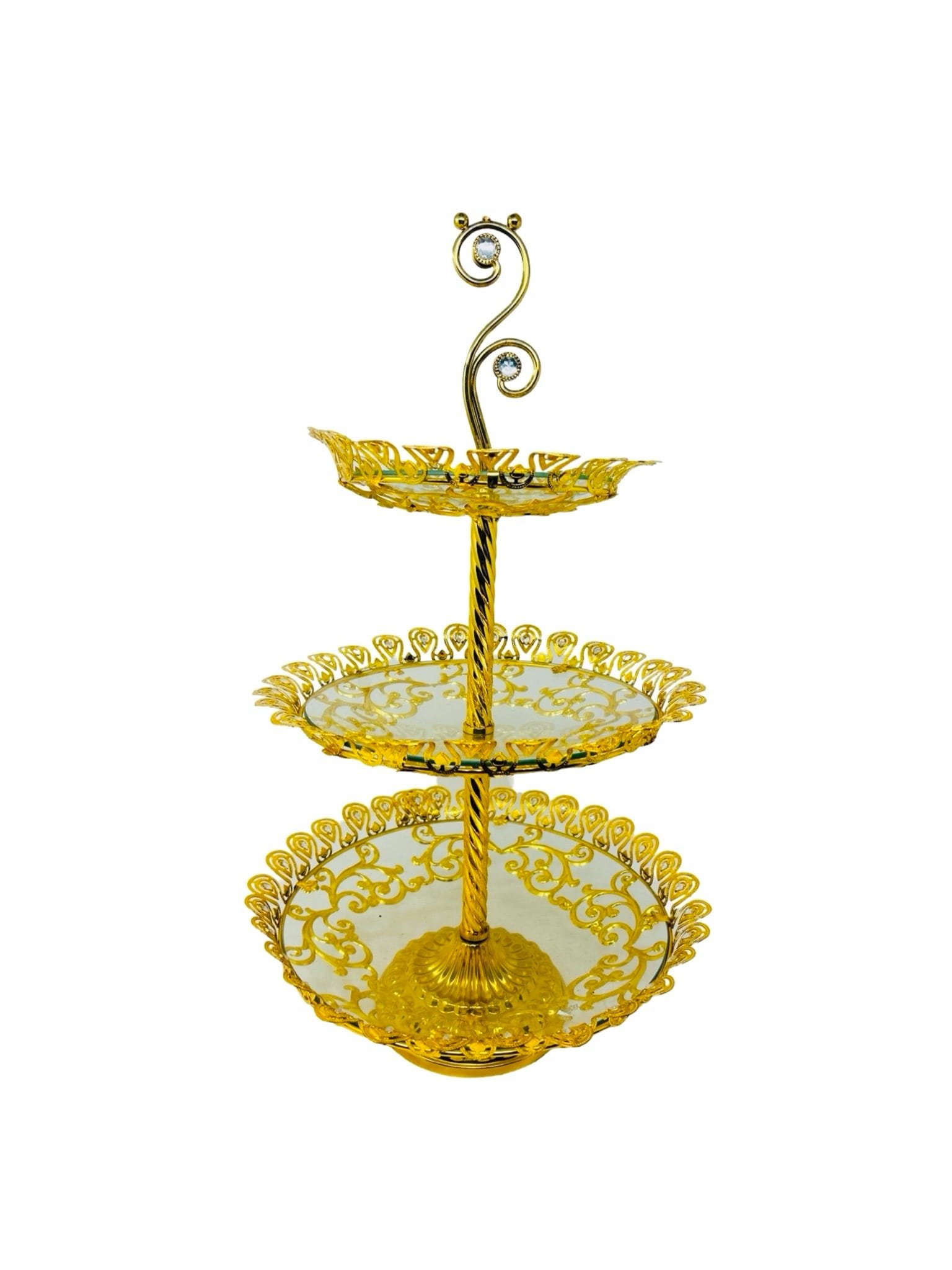 Fenteer Multi Layer Serving Plate Tiered Fruit Tray Elegant Server Serving Dishes Dessert Plates for Home Parties Dining Room Kitchen, 3 Layer Gold