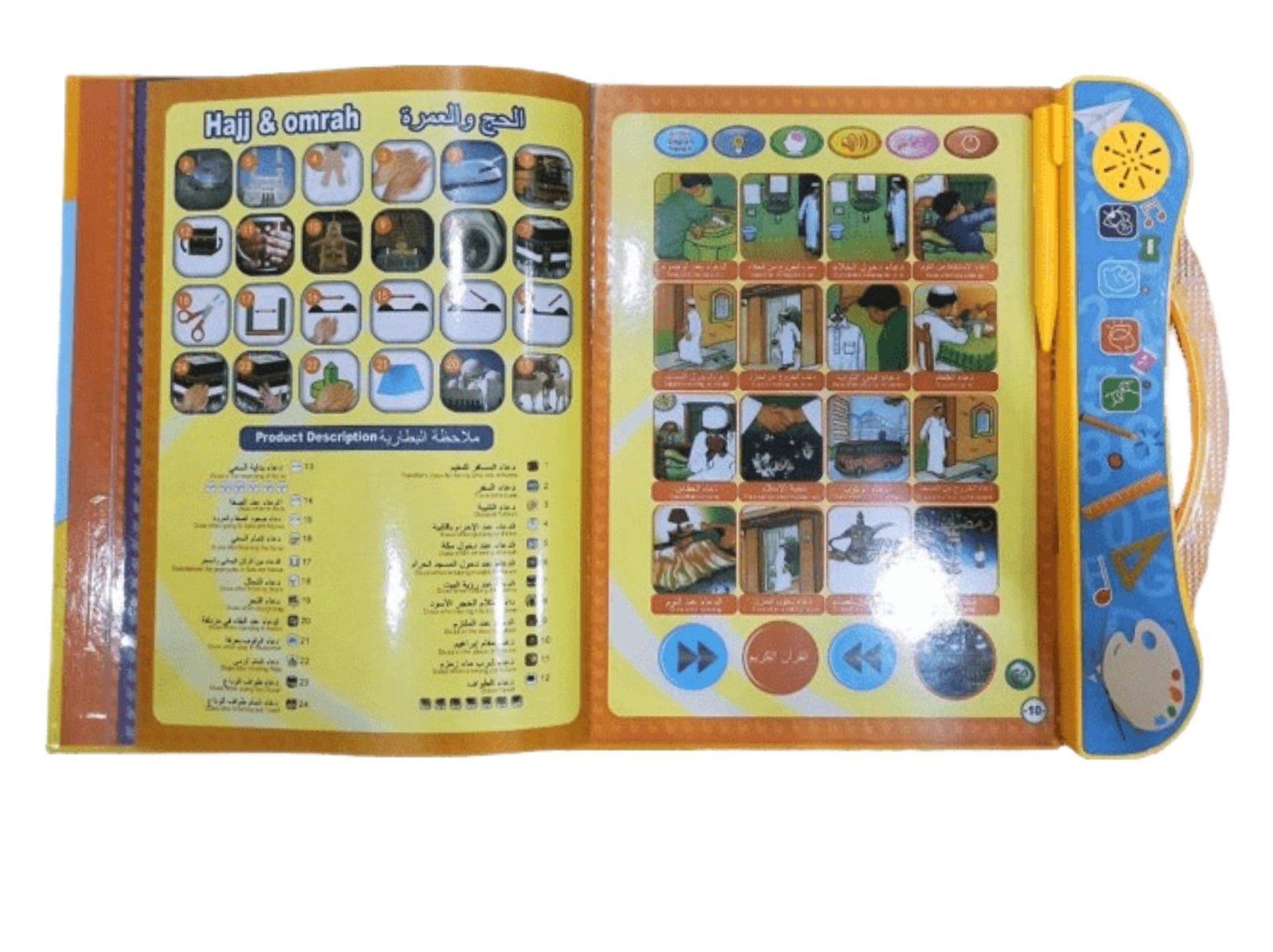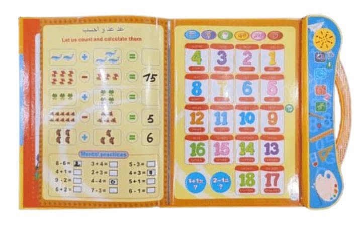The book contains 20 pages to teach your child,the alphabet in Arabic, French, and English in an entertaining way and without boredom