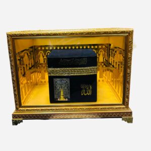 Kaaba Model with Elegant and Illuminated Golden Frame Design