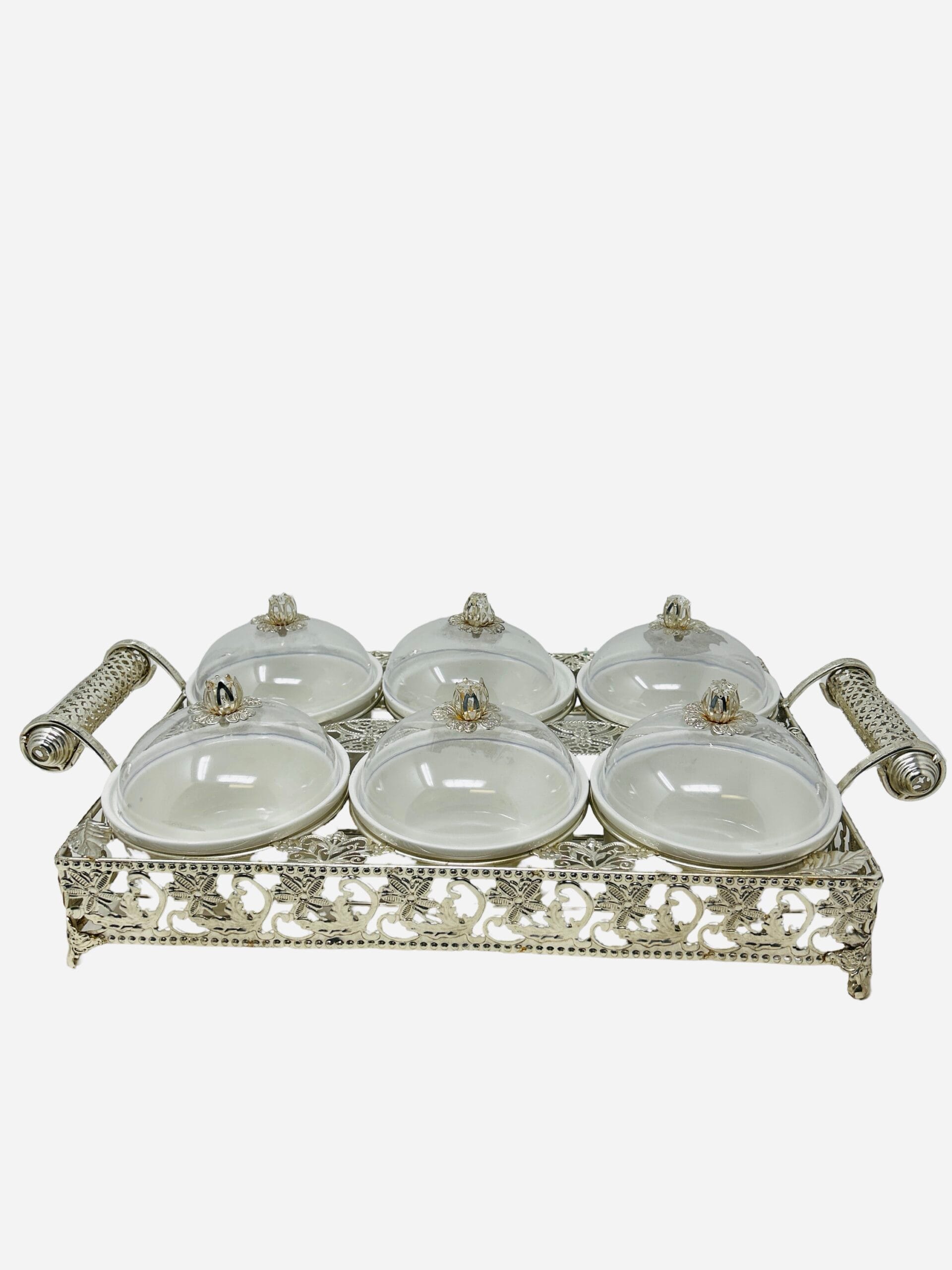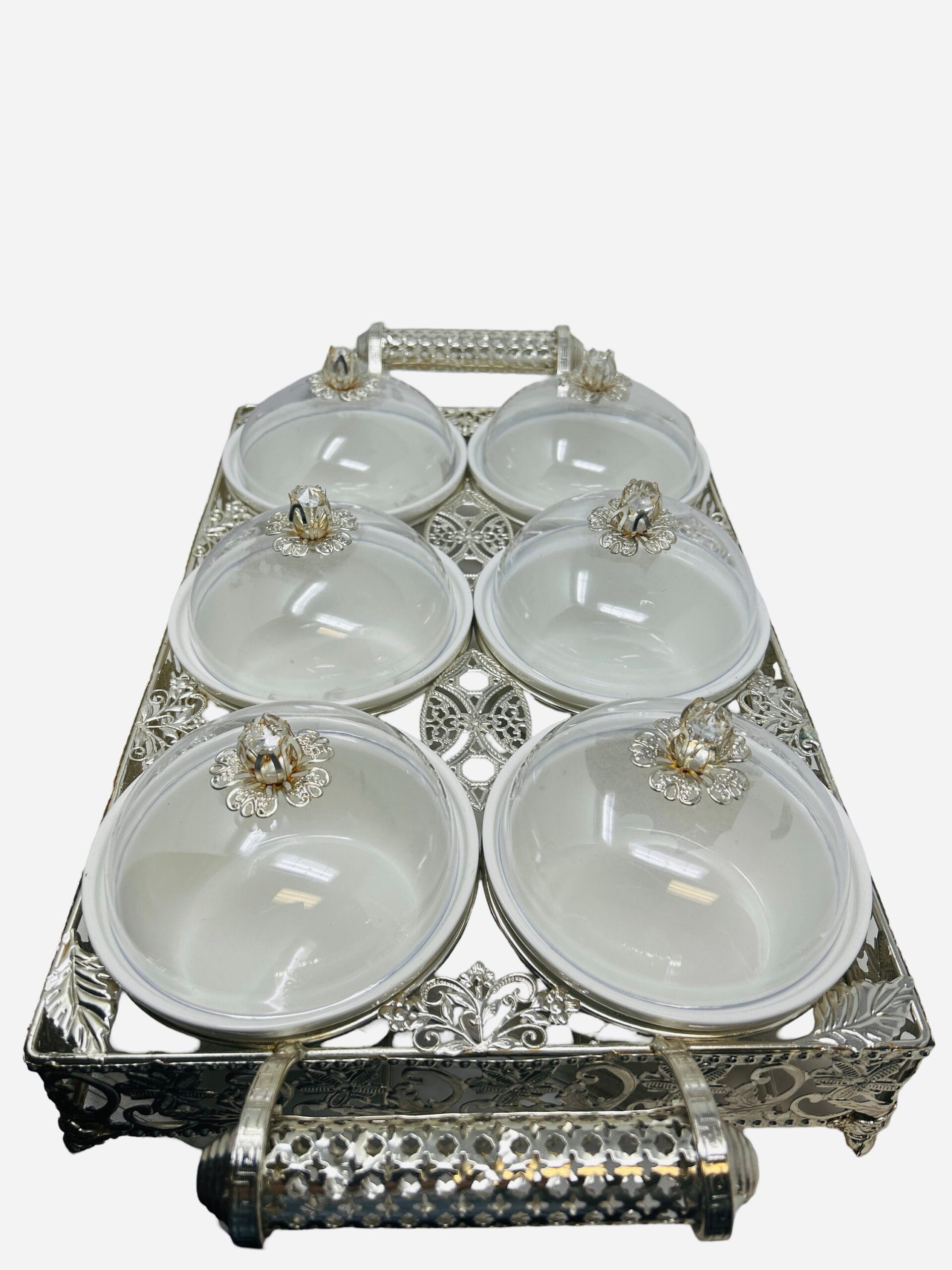 Luxury 6-Round Section Serving Dish with Crystal Knob | Elegant Design | Ideal for Nuts & Desserts | Perfect for Special Occasions