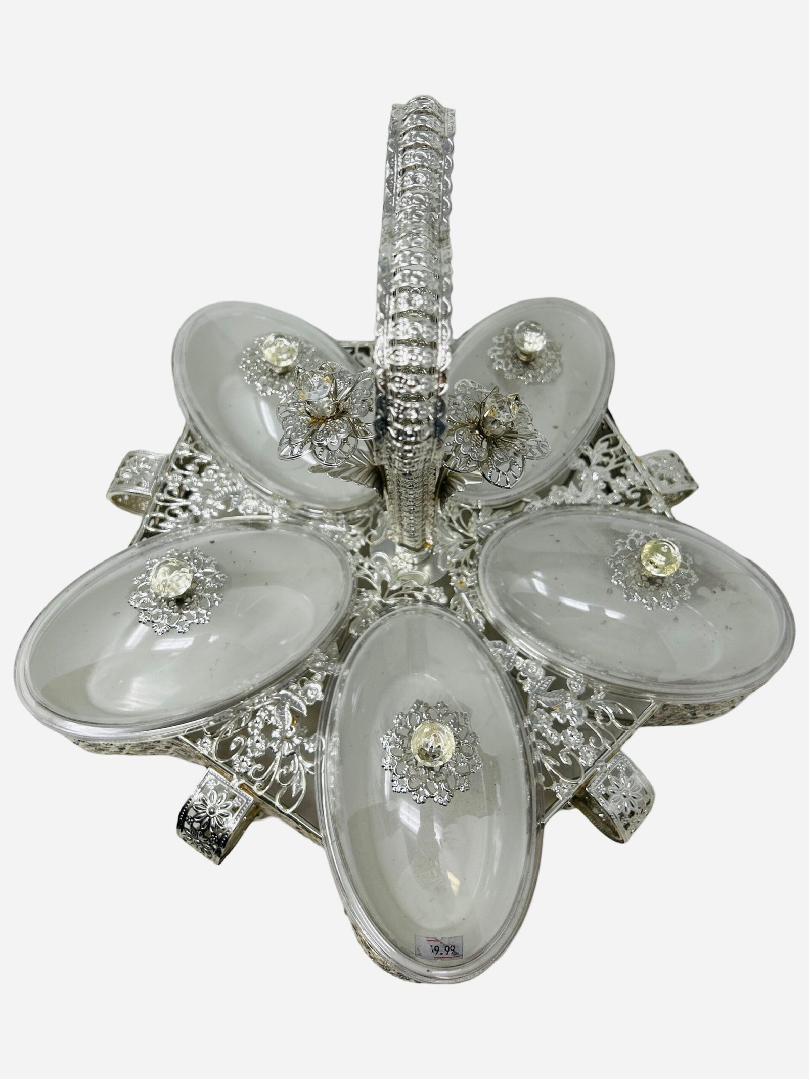 Luxury 5-Round Section Serving Dish with Crystal Knob | Elegant Design | Ideal for Nuts & Desserts | Perfect for Special Occasions