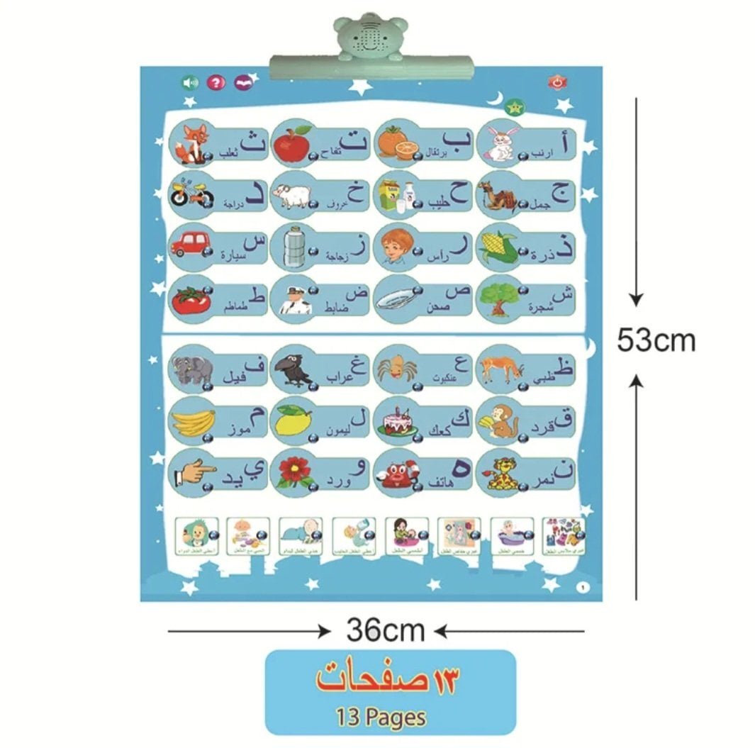 Premium e-book with charger in both Arabic and English A distinctive e-book for children’s education The best gift for your child Tactile interaction Listening training Make your child love studying Clear and uncomplicated design Contains entertainment and sports Children’s garden Math and quantity. The zoo. Calculate a promise. Learn the shapes. Learn to draw. See the picture and explain the story. Letters and words. Transportation tools. Fruits and vegetables. Animals. Shapes and colors. Daily use tools. Learn ablution. Steps to learn prayer. Learn the Qur’an and supplication