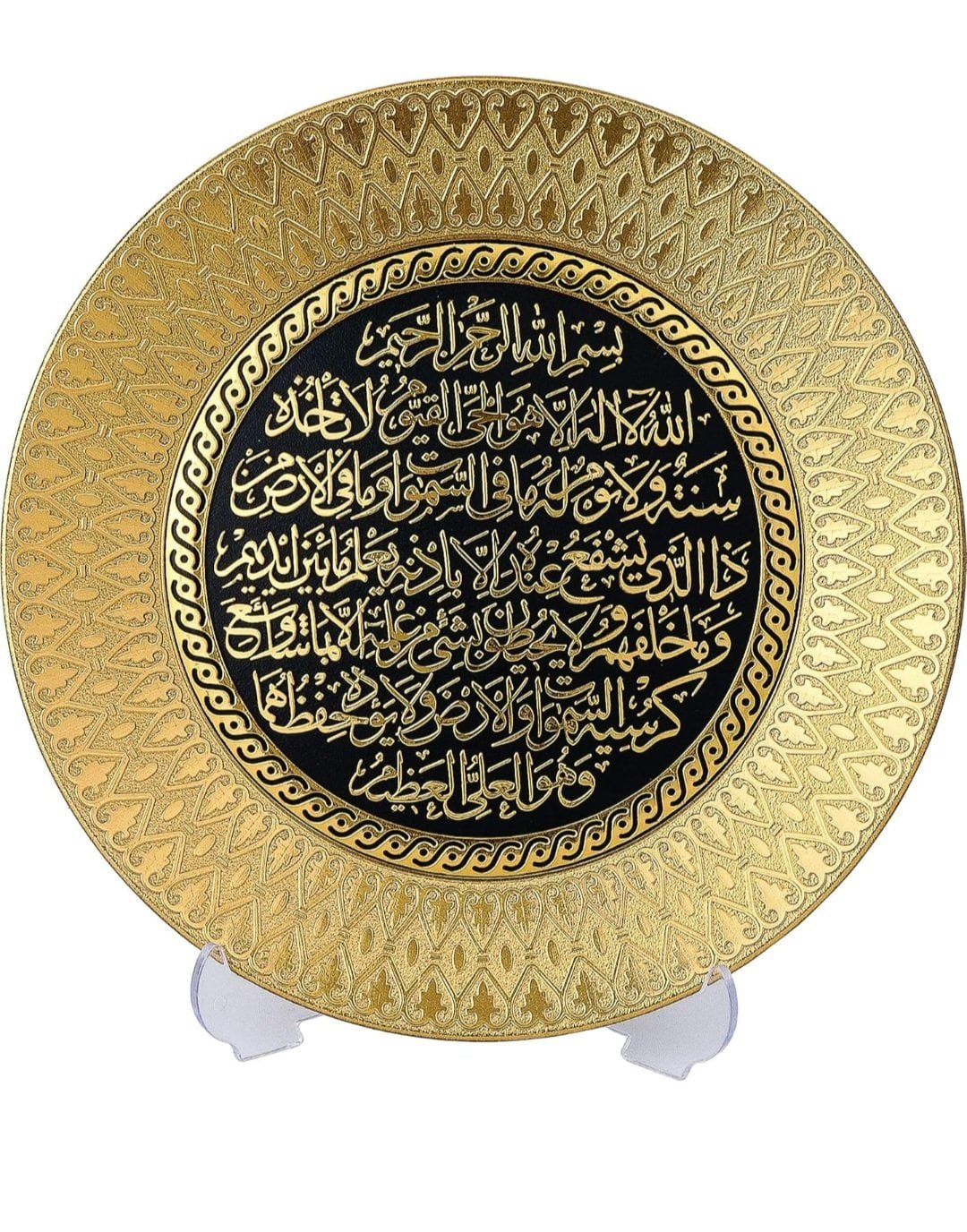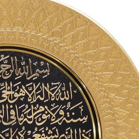 Embossed with Ayatul Kursi in Arabic text.