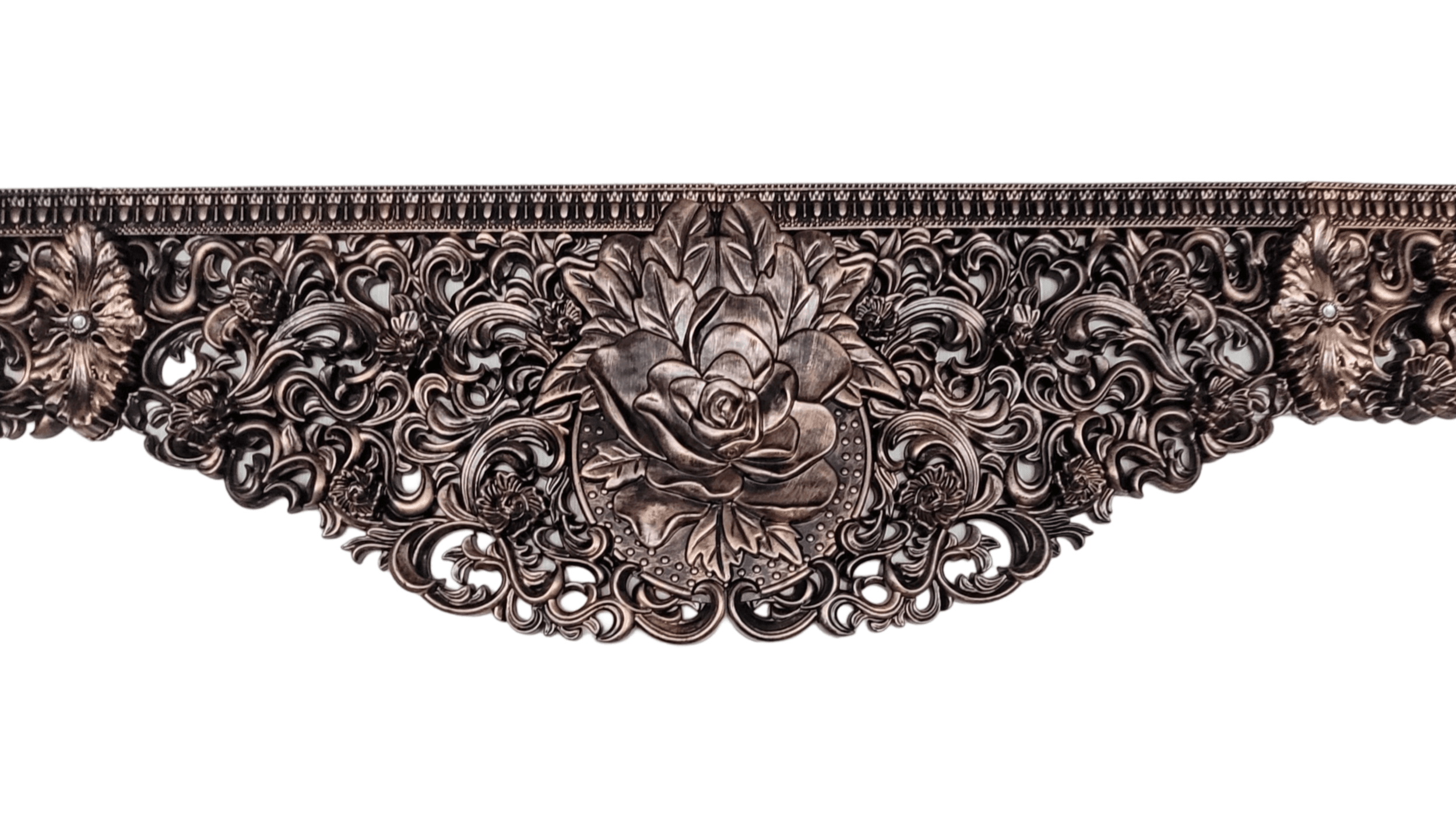 A beautiful golden cone sculpture engraved with the 99 names of Allah accented with crystal rhinestones Green, Red, Blue, Turquoise